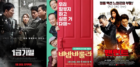 '1급기밀' '비밥바룰라' '맨헌트'가 1월 극장가 틈새 공략에 나선다. 세 편의 영화는 '메이즈 러너:데스 큐어' '코코' '1987' '신과함께-죄와 벌'의 흥행 속에 색다른 장르로 관객들과 만남을 가진다.