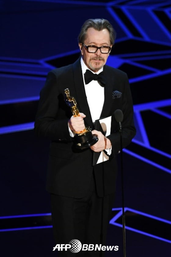 배우 게리 올드만이 제90회 아카데미 시상식에서 남우주연상을 받고 기뻐했다.