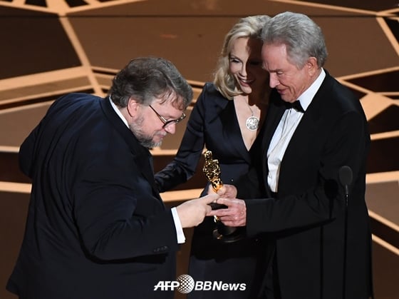 작년 시상식에서는 반세기 전인 1967년 작 '우리에게 내일은 없다'(Bonnie and Clyde)에서 보니와 클라이드였던 페이 다너웨이와 워렌 비티가 시상자로 나와 '라라랜드'(La La Land, 2016)가 작품상을 수상했다고 발표했다. '라라랜드' 팀 모두가 단상에 올라 수상 소감을 발표하고 기뻐했다. 그러자 단상이 약간 어수선해지면서 놀랄 일이 일어났다.