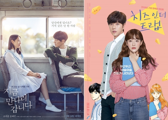 화이트데이를 맞아 개봉한 두 편의 사랑이야기가 주목받고 있다. 14일 나란히 개봉한 멜로영화 '지금 만나러 갑니다'와 로맨스릴러 '치즈 인 더 트랩'. 사랑 이야기에 방점을 두고 확연히 다른 매력과 개성을 앞세운 두 영화가 예매율 1·2위를 기록하며 극장가에 핑크빛 기운을 드리웠다.