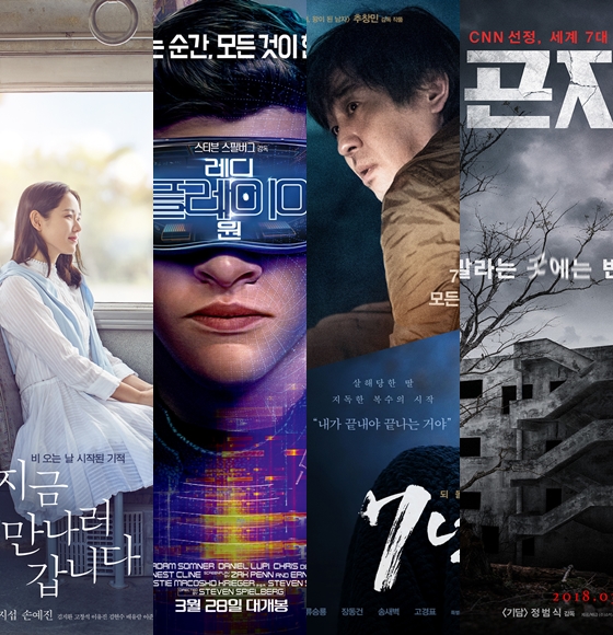 27일 오전9시 기준 영진위 예매율 집계에 따르면 '레디 플레이어 원'이 29.1%로 1위, '7년의 밤' 17.5%로 2위, '지금 만나러 갑니다'가 12.9%로 3위, '곤지암'이 9.2%로 4위다. 신작들의 기세가 만만찮을 것으로 보인다.