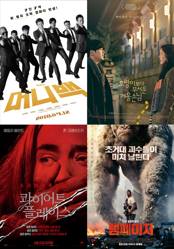 극장가는 비수기라지만 입맛대로 골라볼 신작이 즐비하다. 개성 만점의 영화들이 속속 개봉한다. B급 감성 물씬 풍기는 범죄 오락 '머니백'부터 독특한 감성의 남자 이야기 '호랑이보다 무서운 겨울 손님', 숨막히는 공포스릴러 '콰이어트 플레이스'와 괴수 블록버스터 '램페이지'까지.