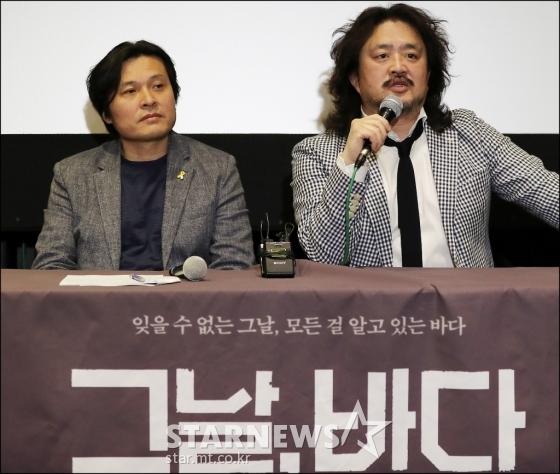 17일 오후 서울 아트나인에서 다큐멘터리 영화 '그날, 바다'의 상영보고회가 열렸다. 제작자인 김어준 딴지일보 총수, 김지영 감독이 참석했다.