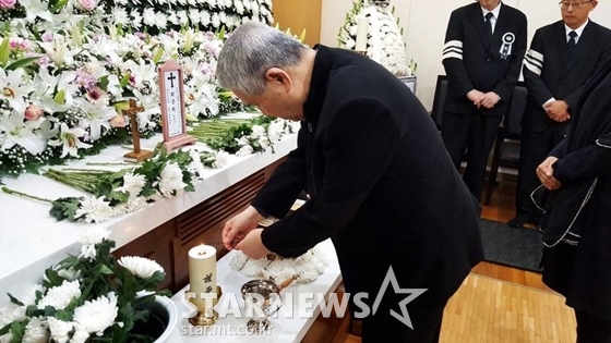 임권택 감독은 향을 태우는 것으로 예를 갖췄다. 아내 채령 또한 고인을 향한 예를 다하며 애도의 뜻을 표했다.