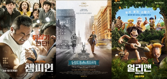 5월로 넘어가는 주에 '챔피언' '원더스트럭' '얼리맨'이 개봉한다. 5월 1일 개봉할 마동석 주연의 '챔피언'에 이어 3일엔 '원더스트럭' '얼리맨'이 극장가에 상륙한다.