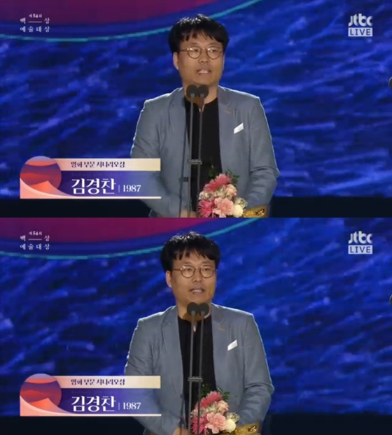3일 오후 9시 30분 서울 삼성동 코엑스D홀에서 열린 제54회 백상예술대상 시상식에서 영화 '1987'이 김경잔 작가가 영화 부문 시나리오 상을 받았다.