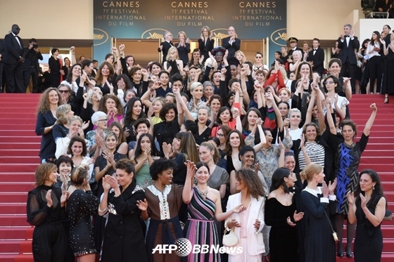 제71회 칸국제영화제 개막 5일째인 12일(현지시간) 오후 영화제 메인 상영관인 프랑스 칸 뤼미에르 극장의 레드카펫에서는 특별한 행사가 펼쳐졌다. 올해 칸국제영화제 심사위원장인 배우 케이트 블란쳇을 필두로 82명의 여성 영화인들이 레드카펫을 오르며 침묵의 행진을 벌인 것이다.