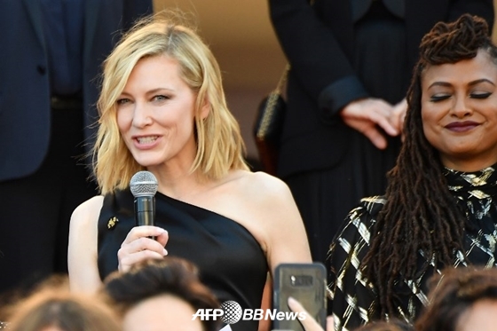 케이트 블란쳇이 연설에 나섰다. 그는 "이곳에 82명의 여성이 모였다. 이는 1946년 첫 칸영화제가 열린 이래 이 계단을 올랐던 여성 감독의 수"라며 "같은 기간 1688명의 남성 감독이 똑같은 계단을 올랐다"고 말했다.
