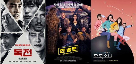 조진웅, 류준열, 김성령, 차승원, 고 김주혁 등이 출연한 '독전'이 오는 22일 개봉한다. 북미에서 큰 인기를 얻는 '스타워즈' 시리즈의 히어로 중 한 명인 한 솔로의 젊은 시절을 그린 '한 솔로:스타워즈 스토리', 오목을 소재로 한 영화 '오목소녀'가 24일 개봉한다.