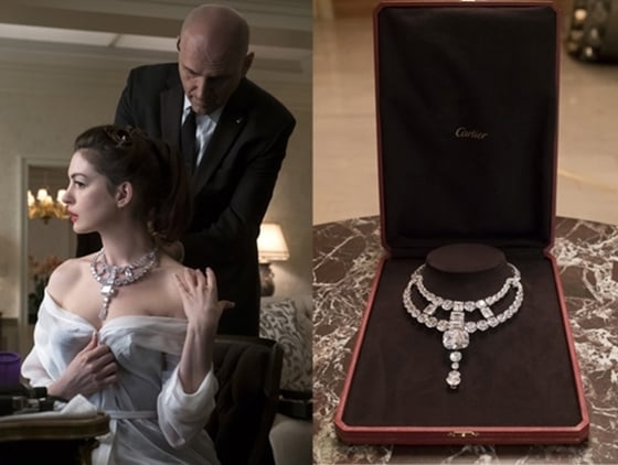 영화에서 '투생'으로 볼린 이 다이아몬드 목걸이는 실제 존재했다. 이는 1931년 자크 까르띠에가 인도 나바나가르의 군주 마하라자를 위해 디자인한 작품이다. '네덜란드의 여왕'이라 불린 136.25캐럿짜리 블루 다이아몬드로 장식된 진품 목걸이는 '세계에서 가장 고귀한 컬러 다이아먼도의 폭포'라는 다소 장황한 이름으로 묘사된다. 핑크, 블루, 그린 등 컬러 다이아를 비롯해 최고급 다이아몬드들이 수십개 쓰였고, 그만큼 압도적인 위용과 아름다움을 자랑했다. 제작 당시 가격은 현재 알려지지 않고 있지만, 현재까지 존재했다면 거뜬히 1억5000만 달러에 달하는 가격이 매겨졌을 것이라는 게 업계의 분석.