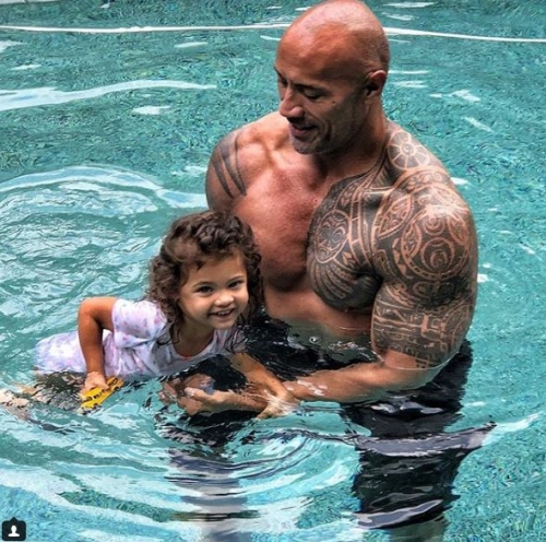 가족과 주말을 즐기던 드웨인 존슨(46)은 지난 주말 딸 자스민 리아(2)에게 수영을 알려주고 있던 중 딸로부터 "아빠의 찌찌가 좋아요"라는 말을 들었다고 전했다.