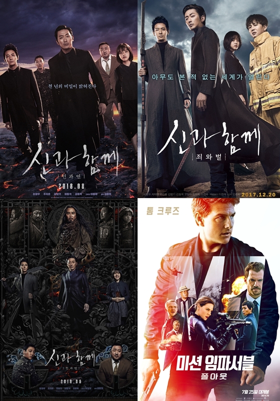 '신과함께-인과 연'에 한 주 앞서 개봉했던 '미션 임파서블-폴아웃'은 11일 중 누적관객 600만 명을 돌파합니다. 톰 크루즈의 대역 없는 액션을 앞세워 사랑받으면서 함께 개봉했던 한국영화 기대작 '인랑'을 제치는 위용을 뽐냈습니다. 극장 관객이 크게 늘어난 8월 첫 주에도 '신과함께-인과연'과 함께 1,2위를 차지하며 제대로 힘을 받았죠. 이대로라면 주말 중 시리즈 전편인 '미션 임파서블:로그네이션'의 612만 관객을 가뿐히 넘길 것으로 보입니다.