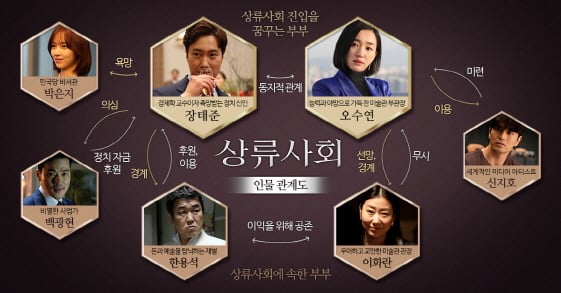 변혁 감독의 '상류사회'가 지난달 29일 개봉했습니다. '상류사회'는 교수와 미술관 부관장 부부가 각각 국회의원과 미술관 관장이 돼 상류사회로 입성하려 하면서 벌어지는 일을 그립니다. 재벌가와 국회의원 등 권력의 민낯과 중산층의 위선을 그리려 했답니다.