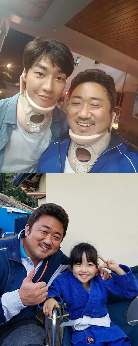 공개된 사진 속 마동석은 영화 '원더풀 고스트'에 같이 출연하는 김영광과 아역배우와 함께 다정한 모습으로 카메라를 응시하고 있다. 특히 그는 해시태그로 '원더풀고스트 추석 무대인사 중'이라고 적어 보는 이들의 눈길을 끌었다.