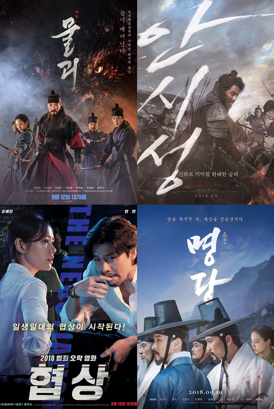 특히 '추석엔 사극'이란 흥행공식이 재확인됐다. 추석 연휴 3일간의 박스오피스 1위는 197만 명을 동원한 사극액션 '안시성'으로 이 기간 중 34.0%의 최고 상영점유율을 기록했다. 역시 사극인 '명당'이 89만 명을 동원해 2위에 올랐다. 3위는 66만 명을 동원한 '협상'이었다. 추석을 겨냥해 동시에 개봉한 고예산 한국영화들이 추석 극장가 상영점유율 70% 이상을 지배하며 전년대비 한국영화 관객 수는 크게 증가했지만 결과적으로 어느 한 편도 크게 흥행하지는 못했다.