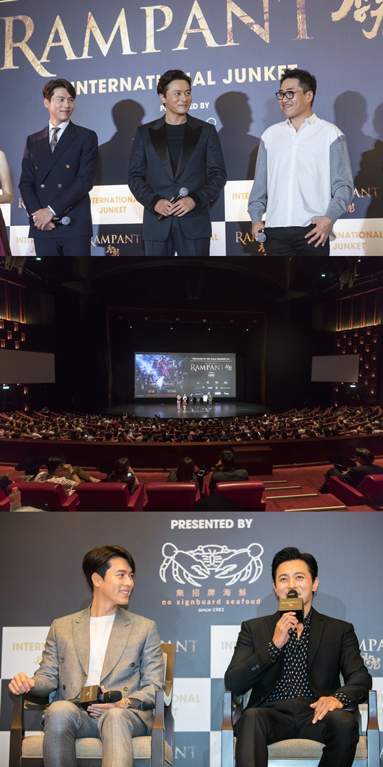 영화 '창궐'이 싱가포르를 달궜다. '창궐'의 현빈, 장동건, 김성훈 감독은 지난 30일 싱가포르에서 열린 글로벌 정킷 일정을 성황리에 마무리했다.