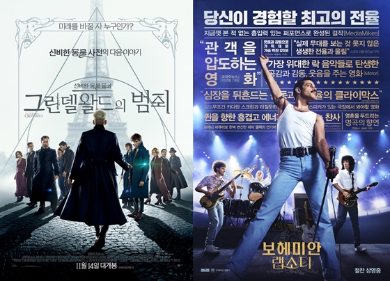 '신비한 동물들과 그린델왈드의 범죄'가 개봉 첫 주말 1위에 올랐다. '보헤미안 랩소디'는 2위츷 차지했다. / 사진=포스터