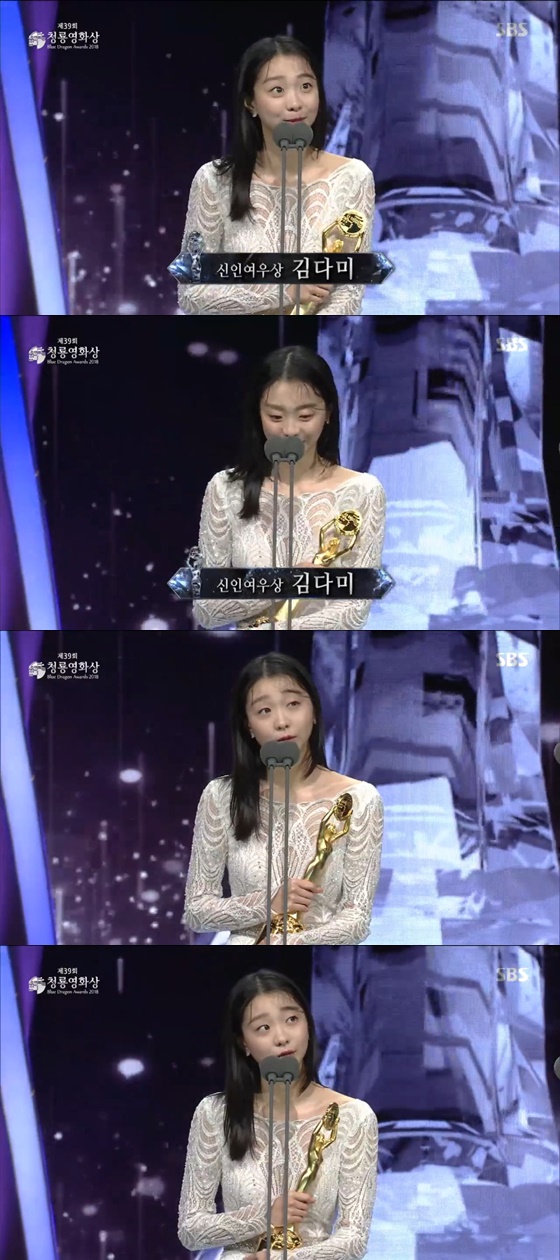 배우 김다미가 '2018 청룡영화제'서 신인여우상을 수상했다. 이로써 그는 국내외 신인상 6관왕에 오르는 기염을 토했다.