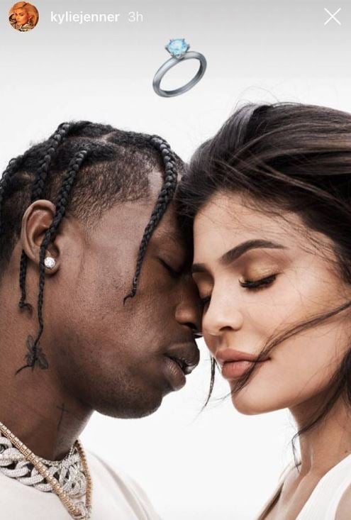 미국의 연예전문미디어 E뉴스는 3일(현지시간) 카일리 제너가 인스타그램의 스토리에 남자친구 트래비스 스콧과의 사진과 함께 반지 이모티콘을 올린 것이 네티즌의 이목을 집중시키고 있다고 보도했다.