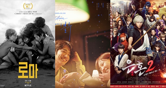 연말 극장가 성수기를 앞두고 극장가가 숨고르기 중이다. 19일 '마약왕', '스윙키즈', '아쿠아맨'이 개봉을 앞두고 있는 가운데 '도어락'과 '국가부도의 날' '보헤미안 랩소디'의 3파전이 이어지고 있다. 이런 가운데 넷플리스 오리지널 '로마'와 류이호의 '모어 댄 블루', 일본영화 '은혼2' 등 외화들이 개봉한다.