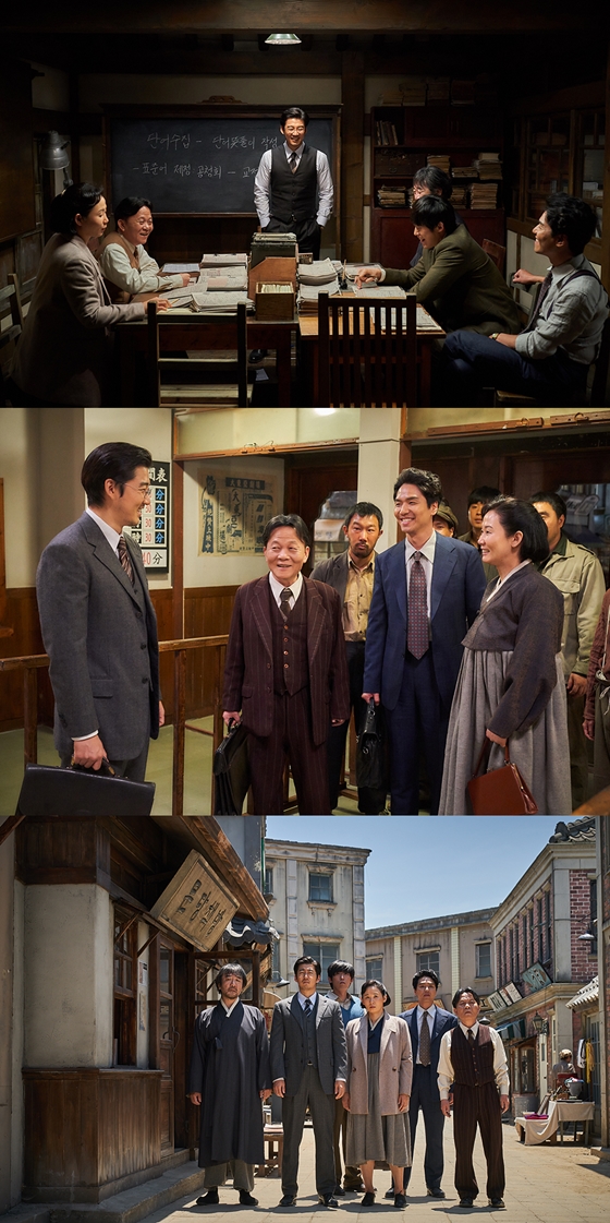 영화 '말모이'가 우리말 사전을 만들기 위해 한 마음 한 뜻으로 노력했던 조선어학회의 동지애가 가득 담긴 스틸컷을 11일 공개했다.