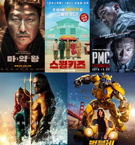 방학과 크리스마스 연휴, 그리고 연말연시 가족 관객이 이어지는 12월은 극장가가 붐비는 시기입니다. 동시에 한국영화가 큰 힘을 발휘하는 시기이기도 합니다. 올해도 지난 19일 송강호 주연의 '마약왕'을 비롯해 강형철 감독의 '스윙키즈'가 동시에 개봉했고 한 주 뒤인 26일 하정우 이선균 주연의 'PMC: 더 벙커가' 개봉했습니다. 이른바 연말 대목을 노리고 개봉한 이 작품들은 150억 이상의 제작비가 들어간 영화입니다. 400만 명 가까운 관객을 모아야 돈을 벌수 있다는 겁니다.