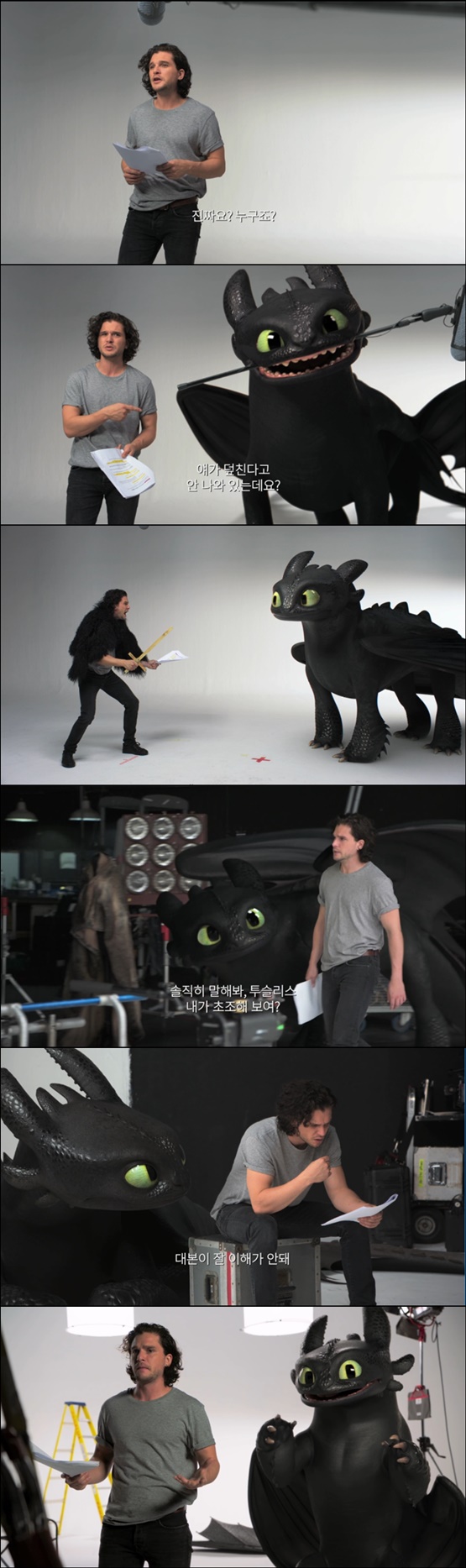 액션 어드벤처 '드래곤 길들이기 3'에서 주인공 에렛 목소리 연기를 펼친 키트 해링턴이 드래곤 투슬리스와 함께 오디션을 펼치는 영상이 공개 됐다.