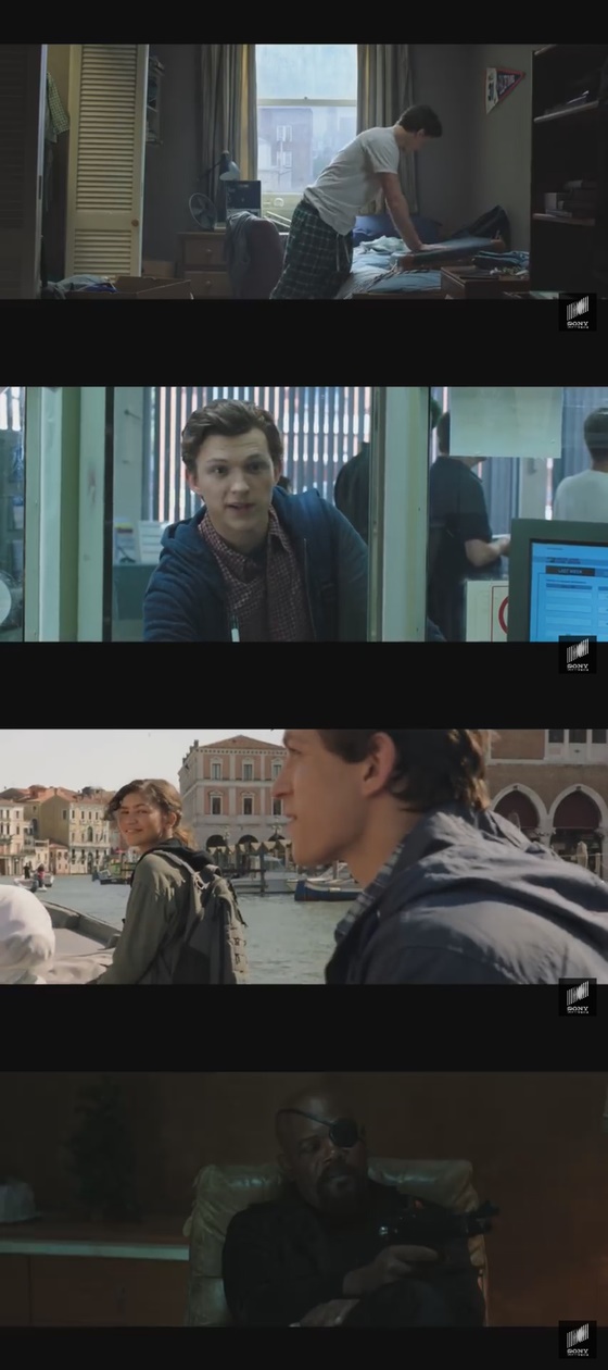 '스파이더맨: 파 프롬 홈' 예고편은 앞서 포스터의 의미를 생각하게 만든다. 피터 파커(톰 홀랜드 분)는 친구들과 여행 목적으로 유럽행 비행기에 몸을 싣는다. 유럽에서 MJ(젠데이아 콜먼 분)와 즐거운 시간을 보내던 피터 파커 앞에 닉 퓨리(사무엘 L. 잭슨 분)이 나타난다.
