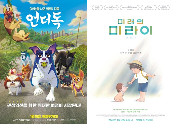 한국과 일본의 애니메이션이 동시에 개봉한 가운데, 한국 애니메이션 '언더독'(감독 오성윤 이춘백)이 일본 애니메이션 '미래의 미라이'(감독 호소다 마모루)를 꺾고 오프닝에서 앞서 나갔다.