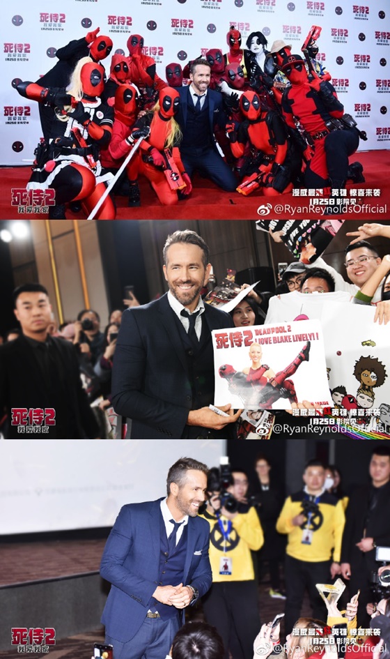 라이언 레이놀즈는 지난 20일 베이징 프리미어 행사에 참석했다. 그는 행사가 끝난 뒤 공식 웨이보 계정을 통해 "중국 팬들 사랑한다. 내가 방문한 도시 중 베이징이 1위를 차지했다. 모두 고맙다"라고 소감을 밝혔다.