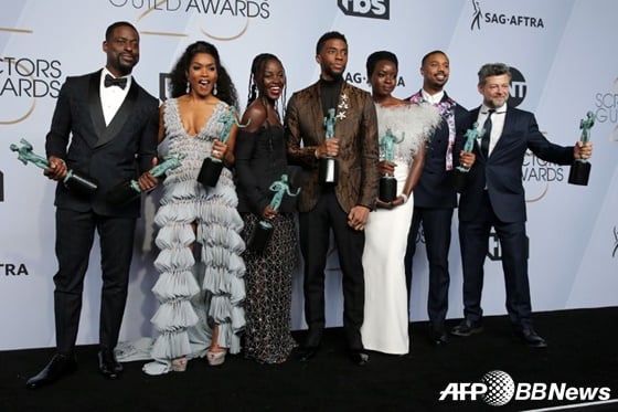 ○...마블 영화 '블랙팬서'가 배우조합상에서 이변을 만들었다. '블랙팬서'에 출연진들이 모두 영화 부문 아웃스탠딩 퍼포먼스 부문에서 상을 받은 것. 배우 채드윅 보즈먼은 ;블랙팬서'의 성공이 가져다준 문화적인 중요성을 언급해 눈길을 끌었다. 다수의 흑인배우 출연진과 흑인 감독이 메가폰을 잡아 개봉 전부터 화제를 모았다. 여기에 부산이 배경으로 등장해 한국에서도 관심이 집중된 바 있다.