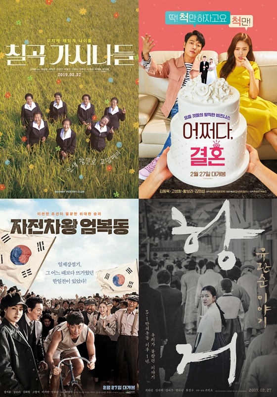 27일에는 '칠곡 가시나들(감독 김재환)'부터 '어쩌다, 결혼(감독 박호찬, 박수진)', '자전차왕 엄복동(감독 김유성)', '항거:유관순 이야기(감독 조민호)'까지 4편의 영화가 관객과 만난다. '칠곡 가시나들'은 한글과 사랑에 빠진 칠곡군의 일곱 할머니들의 이야기를 그렸다. '자전차왕 엄복동'과 '항거:유관순 이야기'는 일제강점기 시대의 실존 인물의 이야기를 담았다.