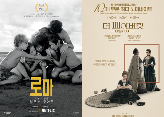 '로마'와 '더 페이버릿: 여왕의 여자'는 아카데미 시상식에서 작품상, 감독상, 여우주연상 등 10개 부문에 이름을 올려 최다 부문 후보작으로 선정됐다.