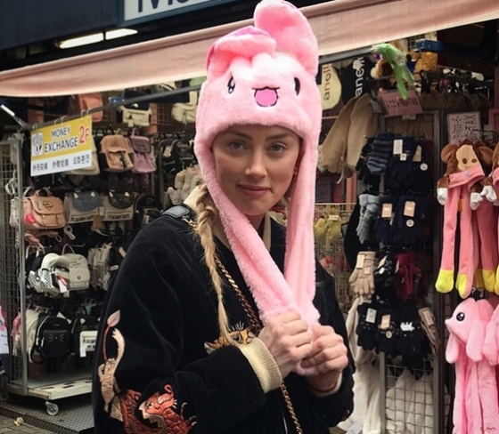 앰버 허드는 코멘트로 일본에 머물고 있다는 사실을 전하며, 눈길을 사로잡았다. 공개된 사진 속 앰버 허드는 귀가 움직이는 핑크색 토끼 모자를 쓰고 귀여움을 발산했다. 장난스러운 표정이 매력을 더한다.