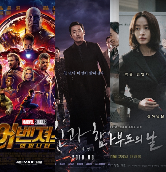 2018년 일별 상영점유율 40% 이상을 기록한 영화는 총 9편이며, '어벤져스: 인피니트 워'의 경우 일별 최고 상영점유율이 77.4%, 40% 이상 일수가 21일로 나타났다. '신과함께-인과 연'은 상영점유율 53.3%로 시작해 개봉 4일 만에 59%로 올라갔으며, 관객 1,200만 명을 동원하여 2018년 흥행 1위를 기록했다.