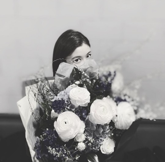 사진 속 김유정은 꽃다발 뒤에 숨어 있다. 얼굴이 반쯤 가려졌지만, 사랑스러운 눈빛을 발산해 시선을 모았다.