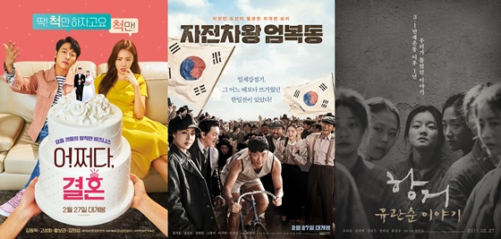 같은 날 장르가 다른 다섯 편의 영화가 관객과 만난다. '어쩌다, 결혼'부터 '자전차왕 엄복동', '항거:유관순 이야기', '칠곡 가시나들', 외화 '더 와이프'까지 준비되어 있다.