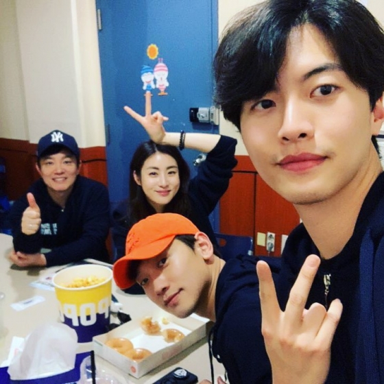 공개된 사진에는 영화 자전차왕 엄복동 출연진의 모습이 담겼다. 특히 무대 인사 스케줄 가운데 휴식 시간, 다 함께 간식을 먹는 모습이 눈길을 끈다.