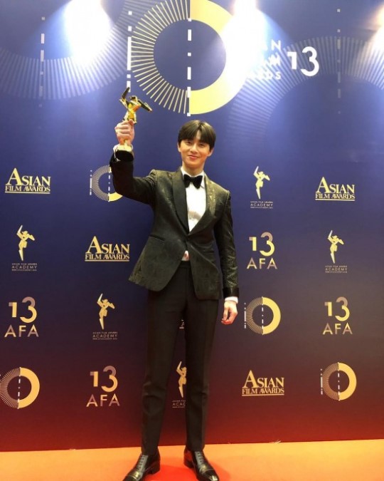 박서준이 제13회 아시안 필름 어워드(AFA) '떠오르는 스타(Rising Star)'상 수상 인증샷을 공개했다.