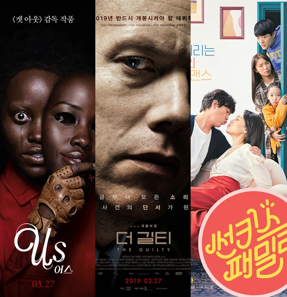'캡틴마블' 흥행세가 꺾이고 '돈'이 한국영화 자존심을 회복시킨 가운데 새로운 영화들이 비수기인 3월 극장가를 달굴지 주목된다. '어스'와 '더 길티' '썬키스 패밀리'를 소개한다.