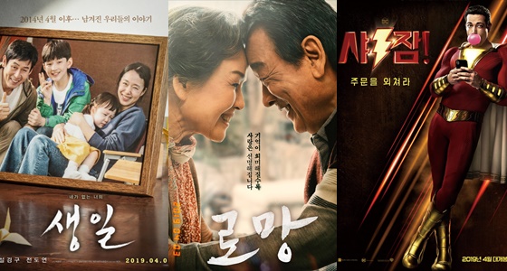 4월이 왔다. 세월호 5주기를 앞둔 가운데, 세월호를 다룬 상업영화 '생일'이 개봉한다. DC는 '캡틴마블'과 '어벤져스 : 엔드게임' 사이 새 히어로 '샤잠!'을 선보인다. 부부 동반 치매를 소재로 한 이순재 정영숙 주연의 영화 '로망'도 소개한다.
