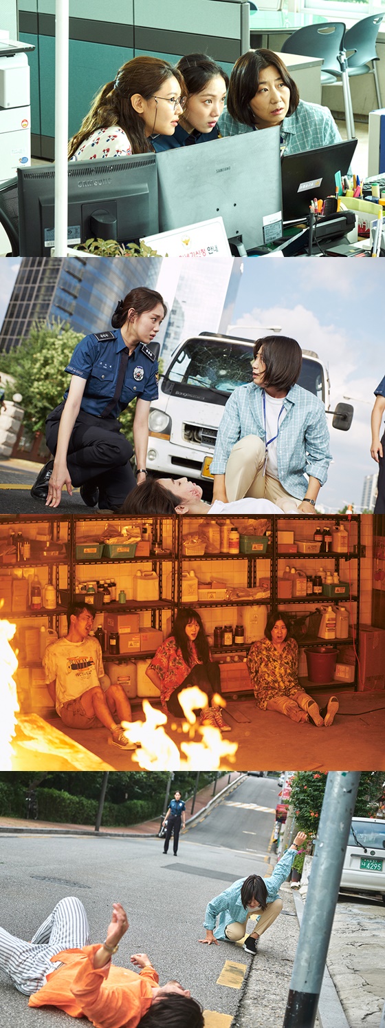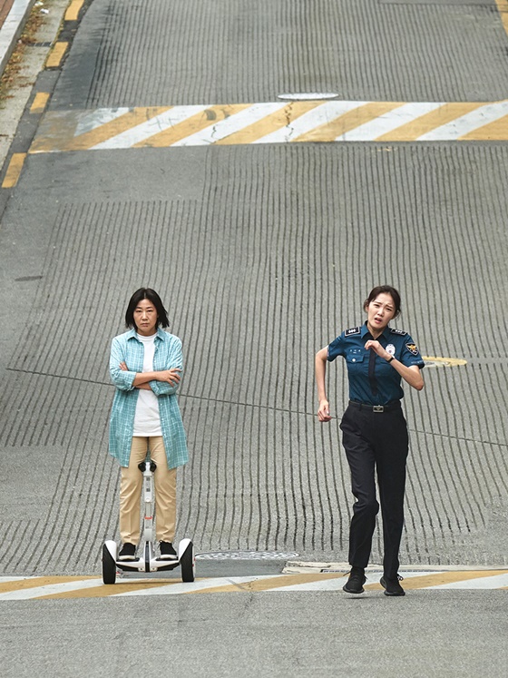 유유히 전동휠을 타는 미영과 그 옆에서 죽어라 달리는 지혜, 비장한 표정의 자동차 추격씬과 하와이안 셔츠를 맞춰 입고 고군분투하는 걸크러시 콤비의 모습은 환상적인 케미와 함께 이들의 거침없는 수사가 어떻게 진행될지 관객들의 궁금증을 증폭시킨다.