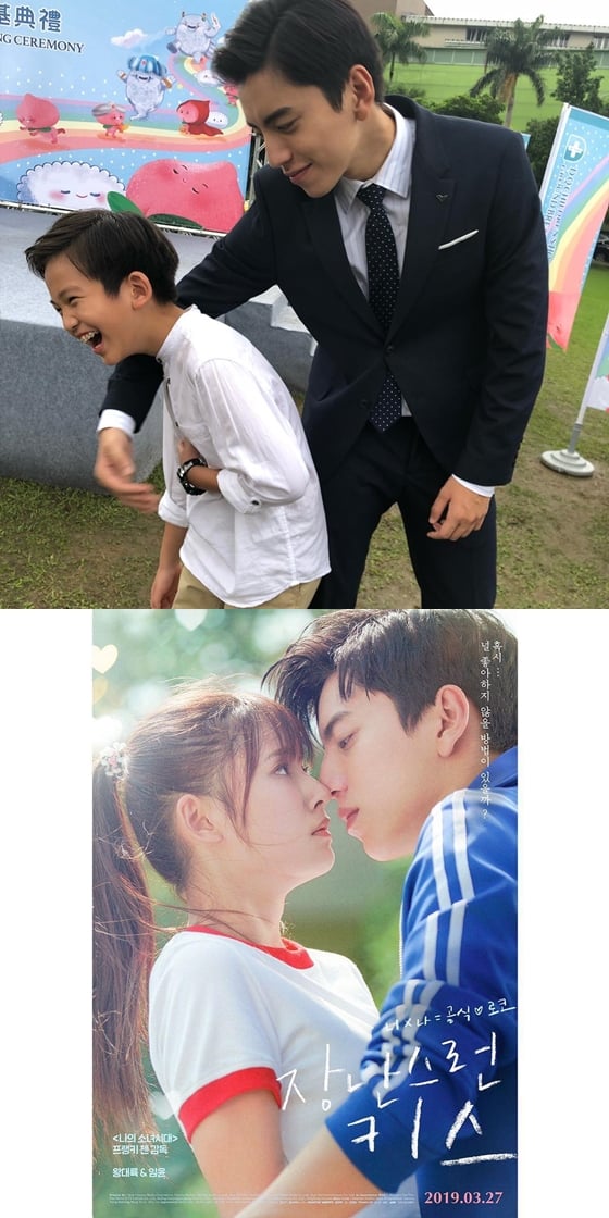 공개된 사진에는 영화 '장난스런 키스' 포스터와 함께 촬영 현장 비하인드 컷이 담겼다.