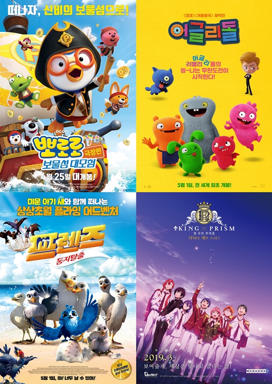 애니메이션도 빼놓을 수 없다. '뽀로로 극장판 보물섬 대모험'과 지난 1일 동시 개봉한 '어글리 돌', '프렌즈: 둥지탈출', '킹 오브 프리즘-샤이니 세븐 스타즈'도 있다. '뽀로로 극장판 보물섬 대모험'은 어린 아이 관객의 절대적인 지지를 받고 있는 상황.