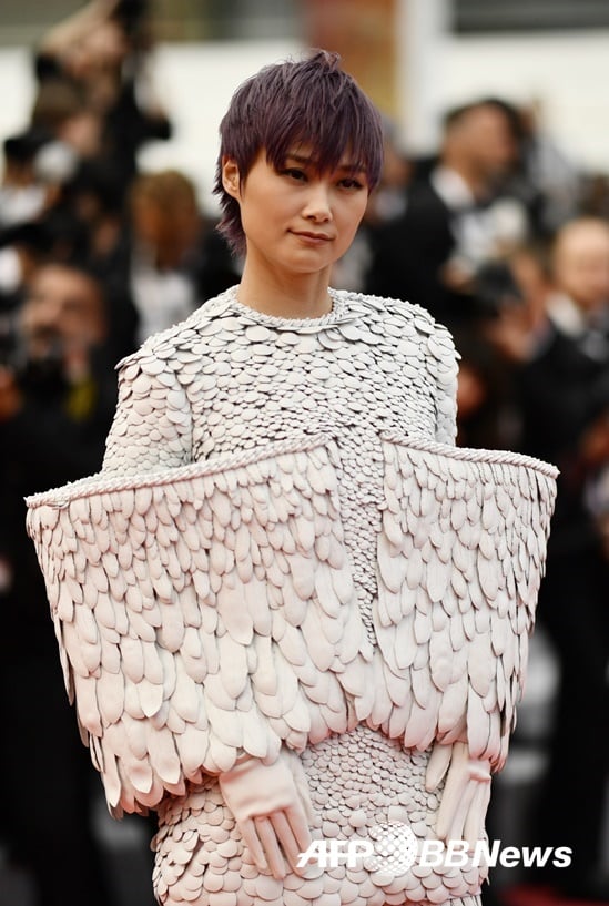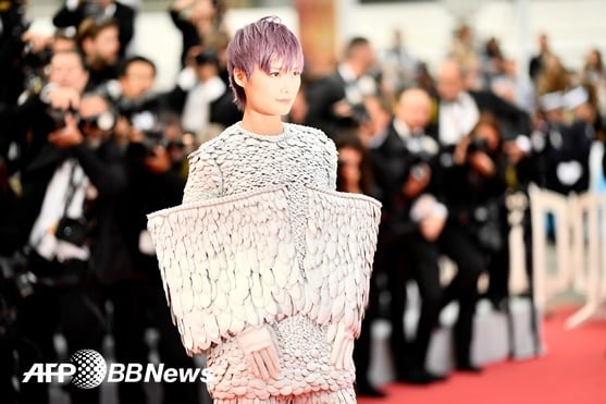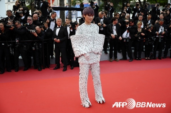 중국 가수 겸 배우 리위춘이 칸 영화제 레드카펫에서 파격적인 패션을 선보였다.