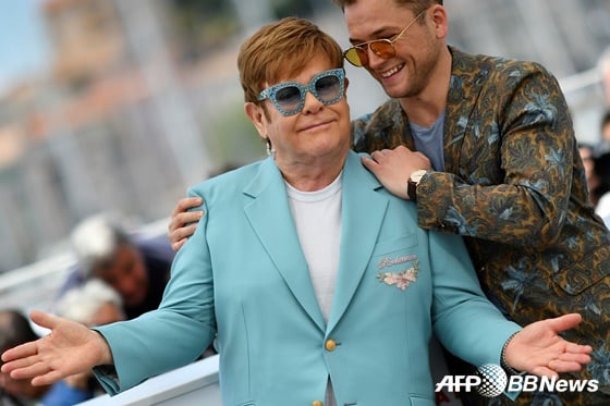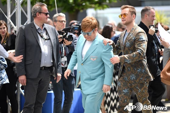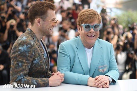 태런 애저튼은 '로켓맨'이 제72회 칸국제영화제 비경쟁 부문에 초청돼 16일 엘튼 존과 함께 뤼미에르 극장 앞 레드카펫에 섰다. '로켓맨'은 엘튼 존의 이야기를 담은 영화.