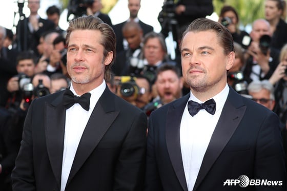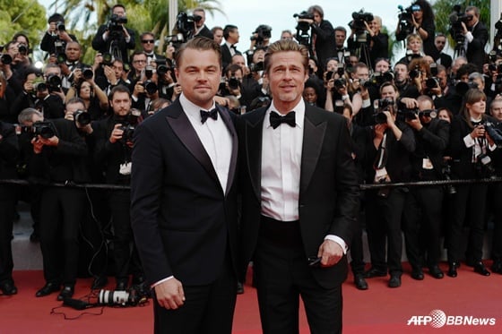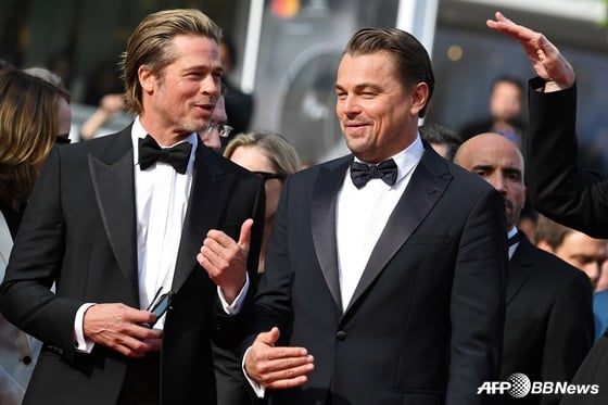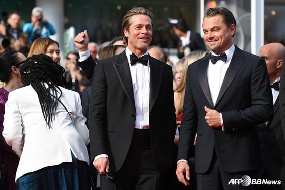 할리우드 배우 레오나르도 디카프리오와 브래드 피트가 한 프레임에 포착됐다.