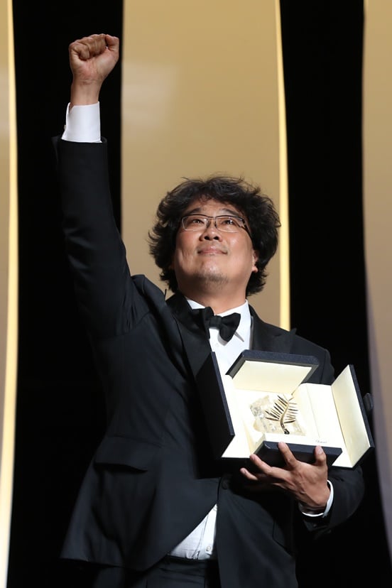 심사위원장인 알레한드로 곤잘레스 이냐리투 감독이 봉준호의 '기생충'을 황금종려상으로 호명하고 봉준호 감독과 송강호가 무대에 올랐다. 봉준호 감독은 "메르시"라고 불어로 인사한 뒤 "불어 연설을 준비 못했지만 항상 프랑스 영화를 보며 큰 영감을 얻었습니다. 어린 시절부터 저에게 영감을 준 앙리 조르주 클루조와 클로드 샤브롤 두 분께 감사드립니다"라고 인사했다.