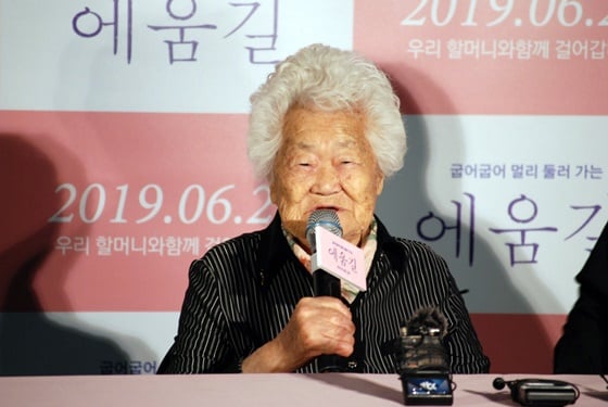 영화 '에움길'에 출연한 일본군 성노예제 피해자 이옥선 할머니의 진심 어린 말이 마음을 울렸다. 그는 담담하게 말을 하다 격앙된 목소리로 자신의 주장을 펼쳤다.