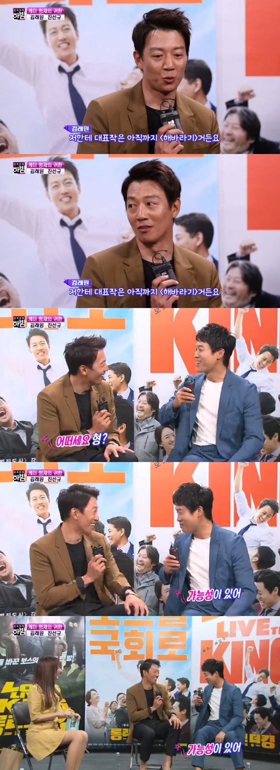 이날 김래원은 "저한테 대표작은 아직까지 '해바라기'거든요"라면서 "이번에 한 번 (바꾸고 싶다)"고 말했다. 이어 함께 출연한 진선규에게 "어떠세요?"라고 말했다.